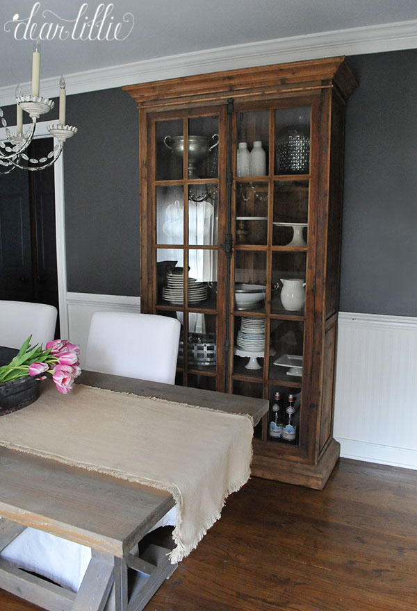 For the last two and half years I have been on the hunt for a hutch for our dining room. At one point I gave up and built some shelves but still continued to hunt for the perfect piece for this spot. Although I mostly was looking for a hutch I also kept my eye out for bookcases too because I love the way they look filled with beautiful serving pieces and I figured if I couldn’t find the right hutch maybe I could find the right bookshelf or cabinet.