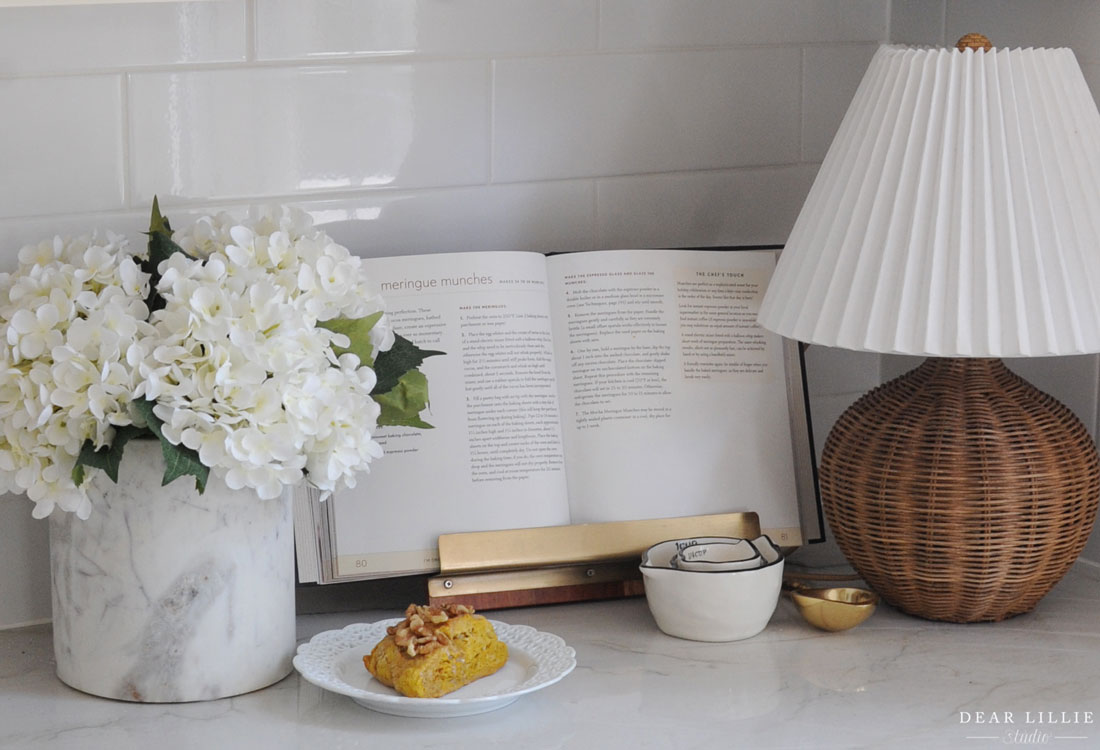 Good morning! Today I wanted to share a little pink tulip cake I made this week. With Valentine’s coming up I decided to make a pink version of this cake I made last year. The cake stand is just a marbled scalloped tray I’ve had for several years (you can find a similar one here and here) on a wood cake stand base that broke off of another cake stand I used to have.